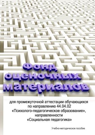 Учебно-методическое пособие разработано для обучающихся магистратуры по направлению подготовки 44.04.02 "Психолого-педагогическое образование", направленности "Социальная педагогика". Представленный фонд оценочных материалов предназначен для проведения промежуточной аттестации студентов и может быть использован как в целях тренировки на практических занятиях, в ходе самостоятельной работы обучающихся, так и для контроля за овладением ими профессиональными компетенциями в разные периоды обучения.
