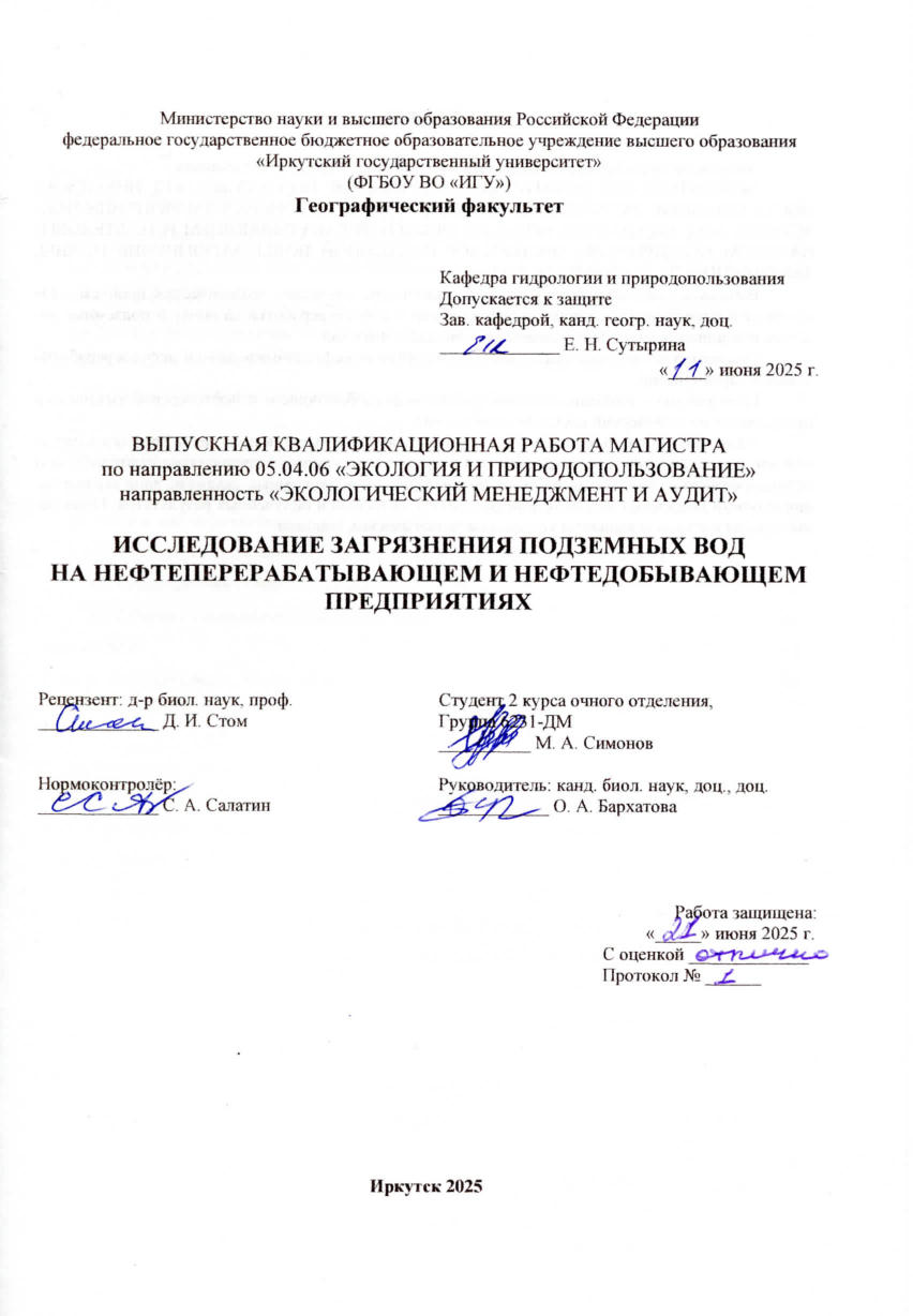 Исследование загрязнения подземных вод на нефтеперерабатывающем и нефтедобывающем предприятиях : ВКР магистранта