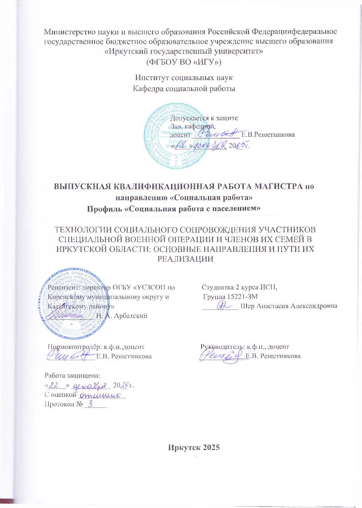 Технология социального сопровождения участников специальной военной операции и членов их семей в Иркутской области: основные направления и пути их реализации : ВКР магистра